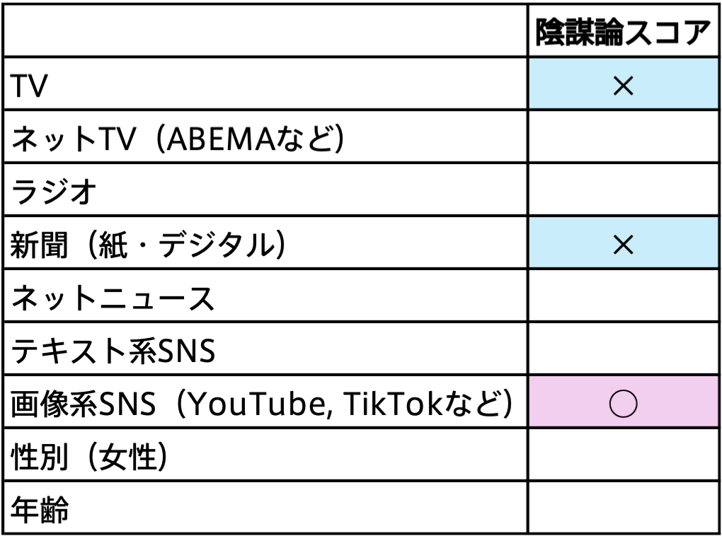 表2 メディア種類と陰謀論スコアの関係